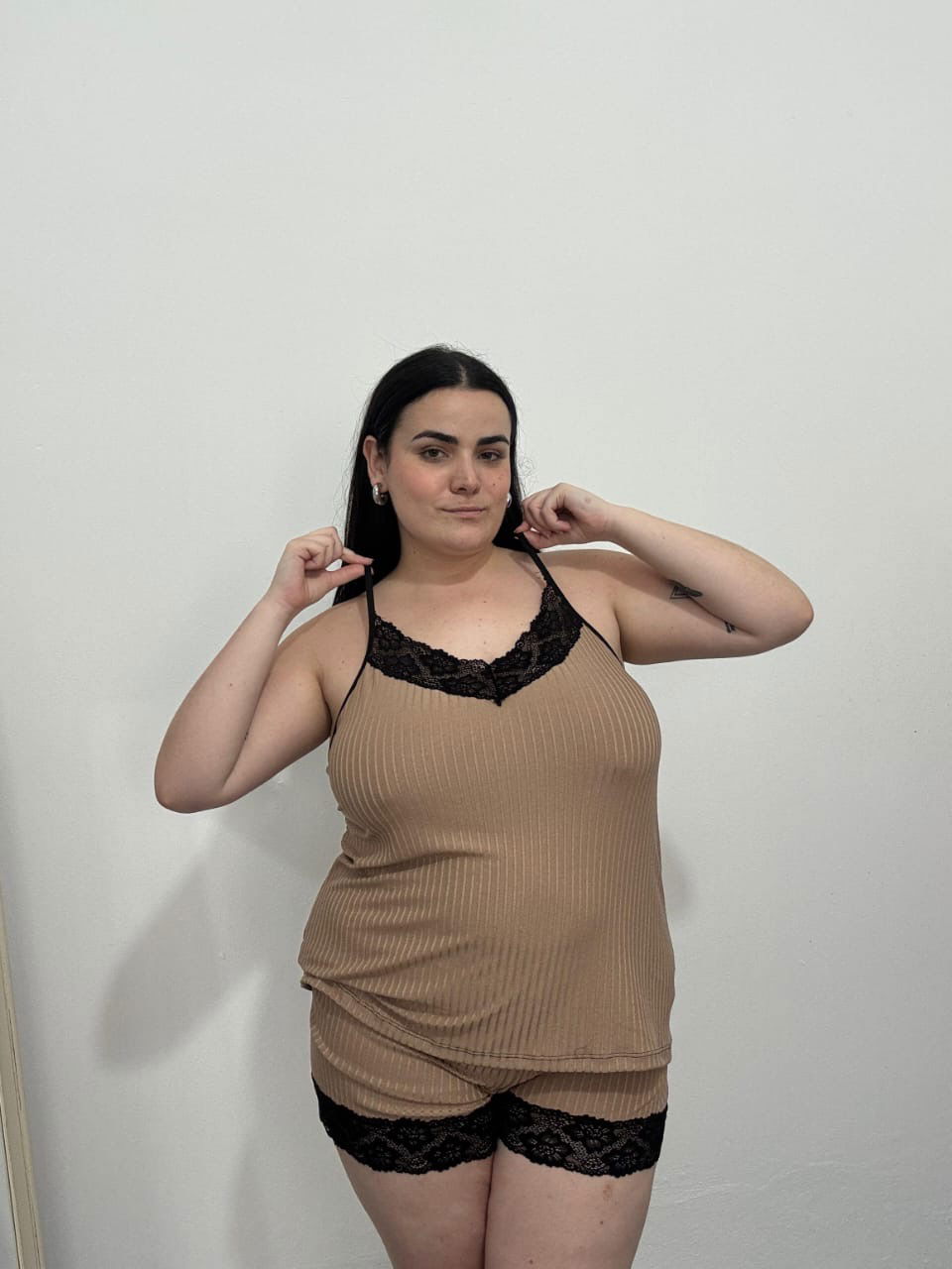 Pijama de morley con breteles regulables. Avios metálicos bañados en plástico!