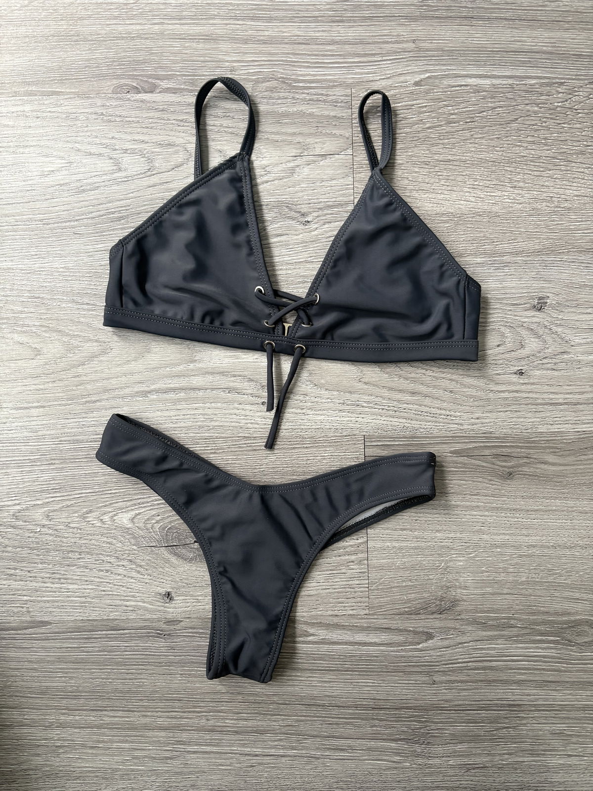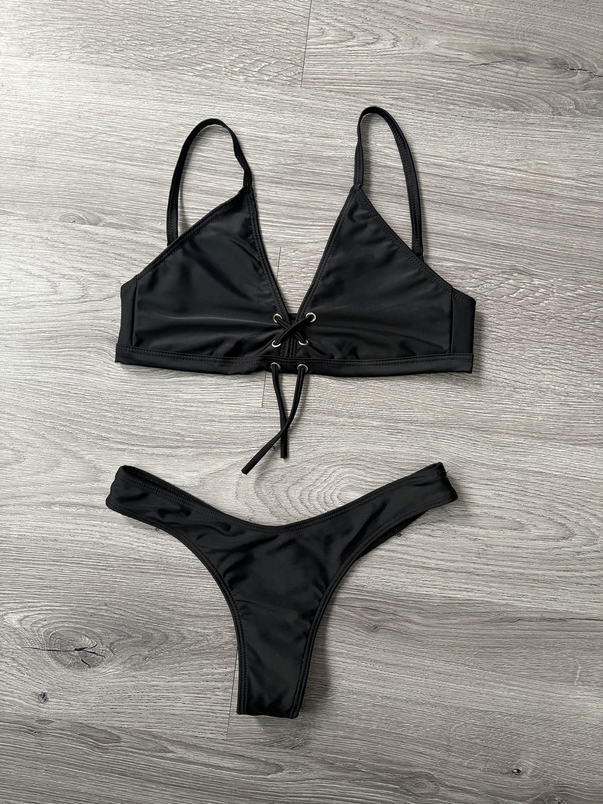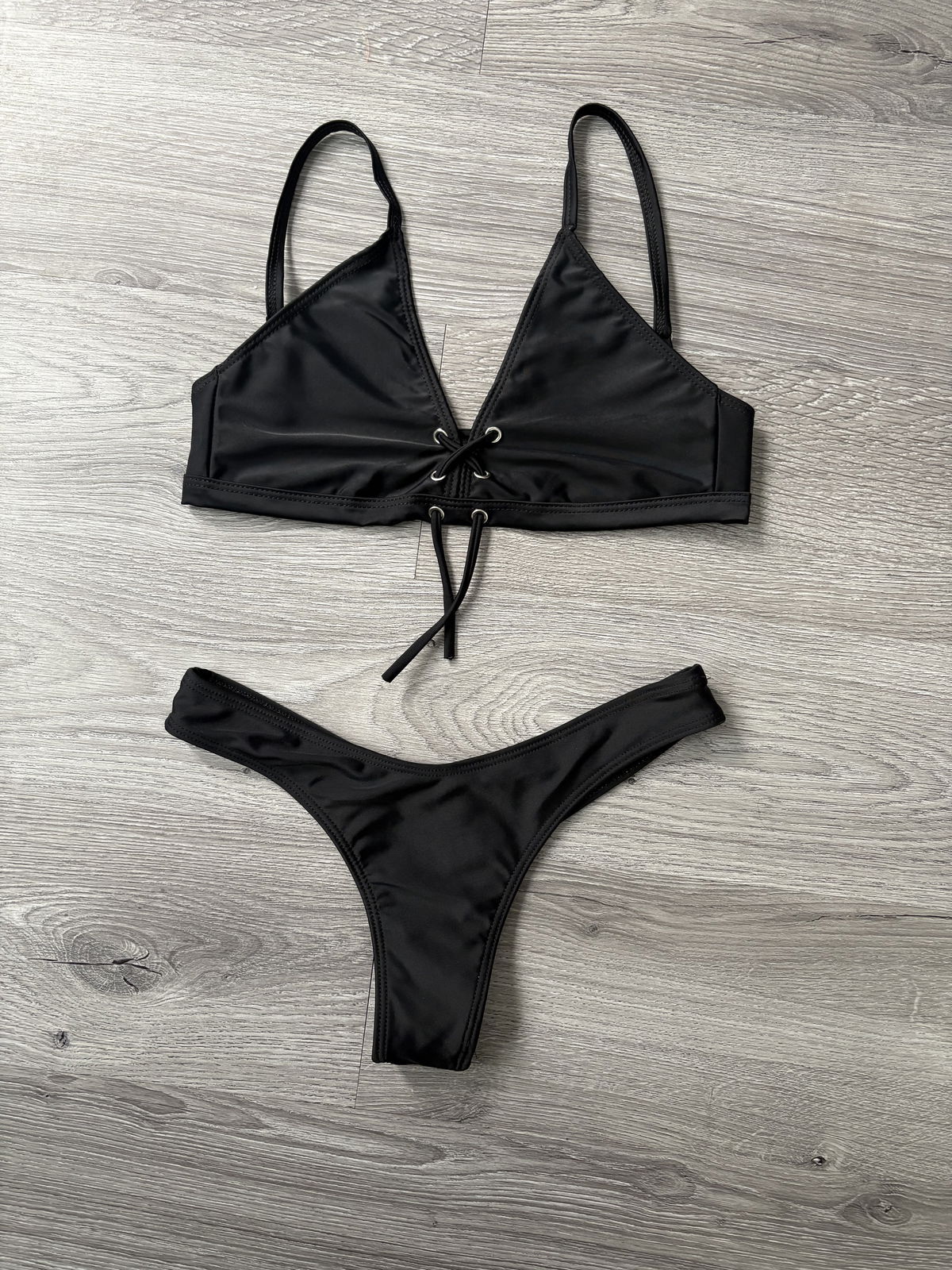 bikini triángulo con colaless entera clásica. En esta bikini, los talles son tal cual nuestra lenceria. Equivalente a un 85-100 real. La bombacha es súper tiro bajo!!!