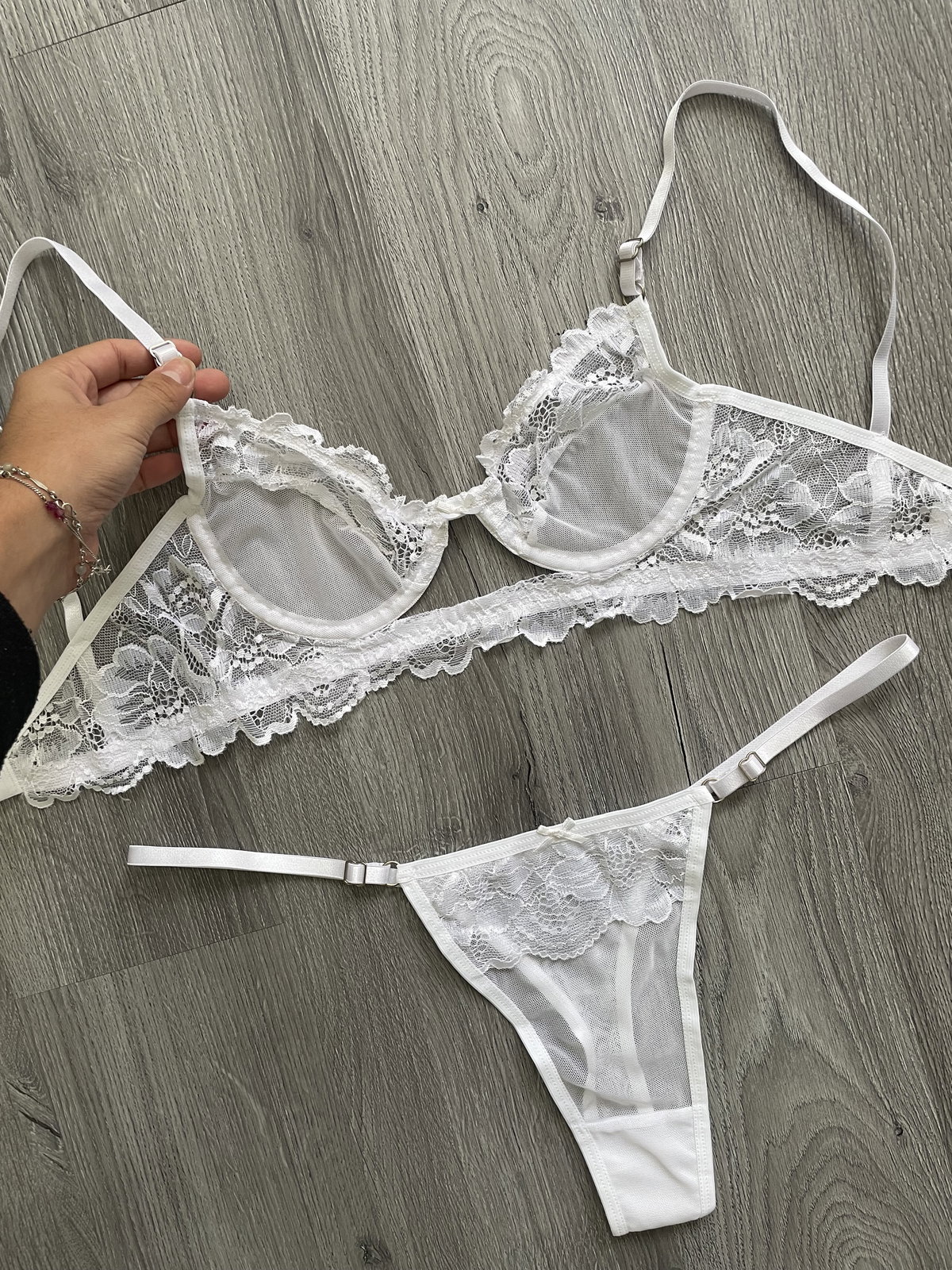 Fresa es ese conjunto que elegís cuando querés sentirte más sensual y un poco más atrevida. Confeccionado en puntilla y microtul, combina transparencia sutil con detalles que elevan todo el diseño.