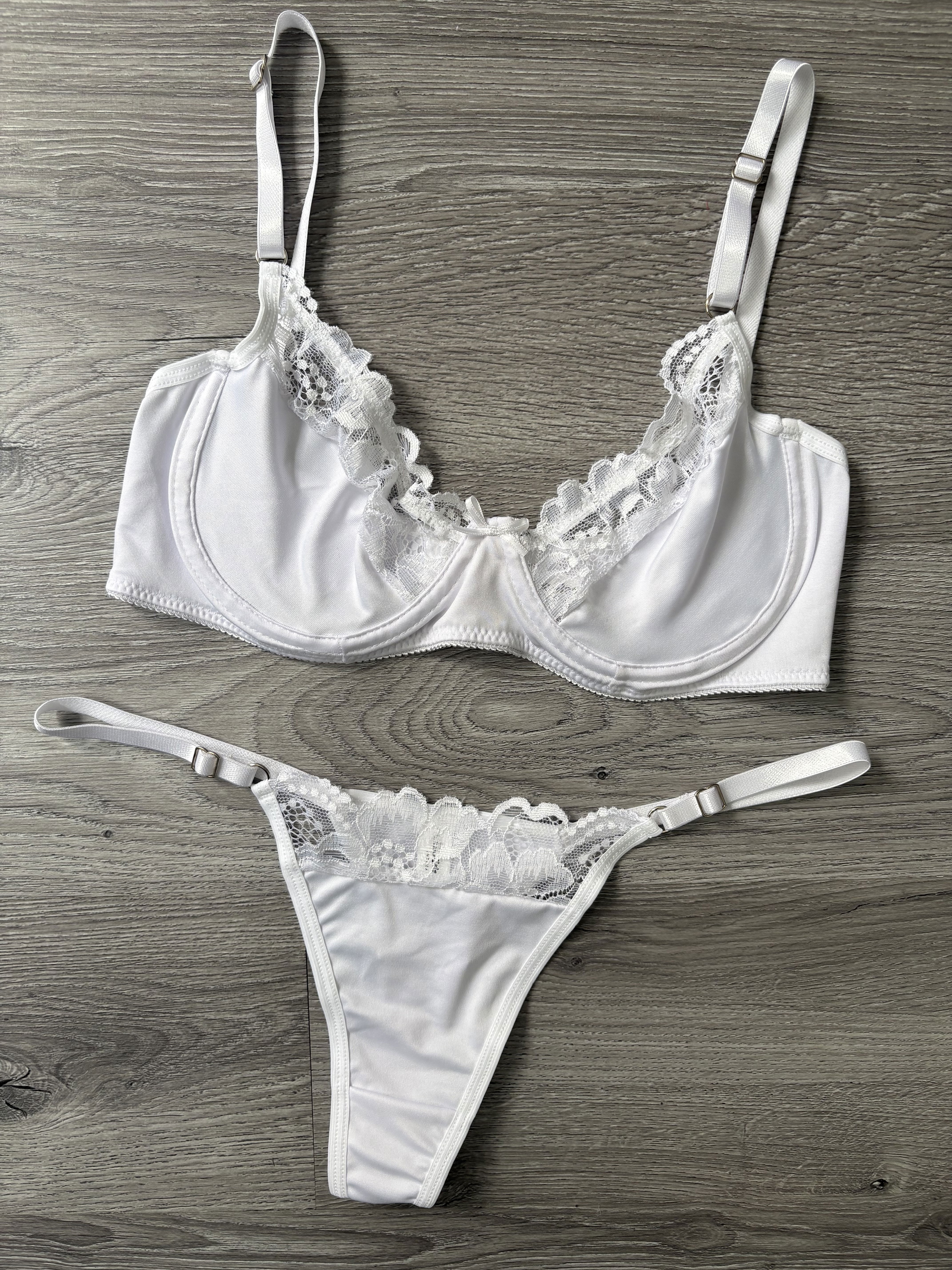 Conjunto de lycra, con detalles en puntilla. Corpiño con arco y Less regulable