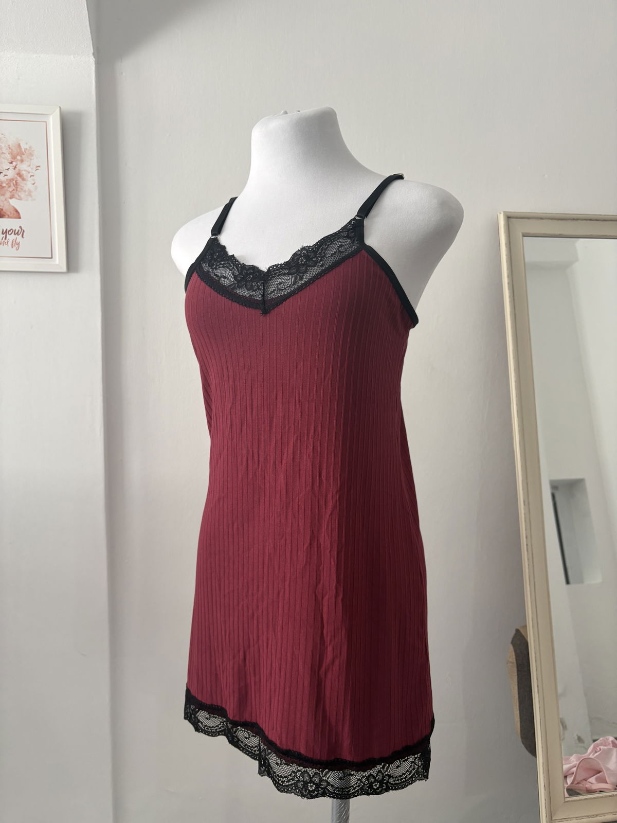 Camisolín hecho en morley con detalles en puntilla. Breteles con avíos metálicos bañados en plástico a tono.