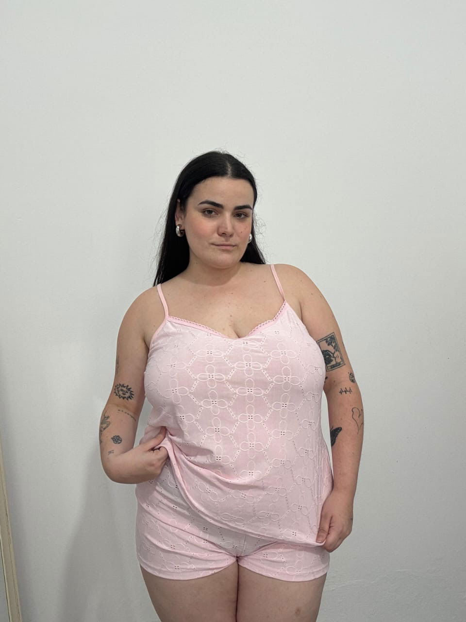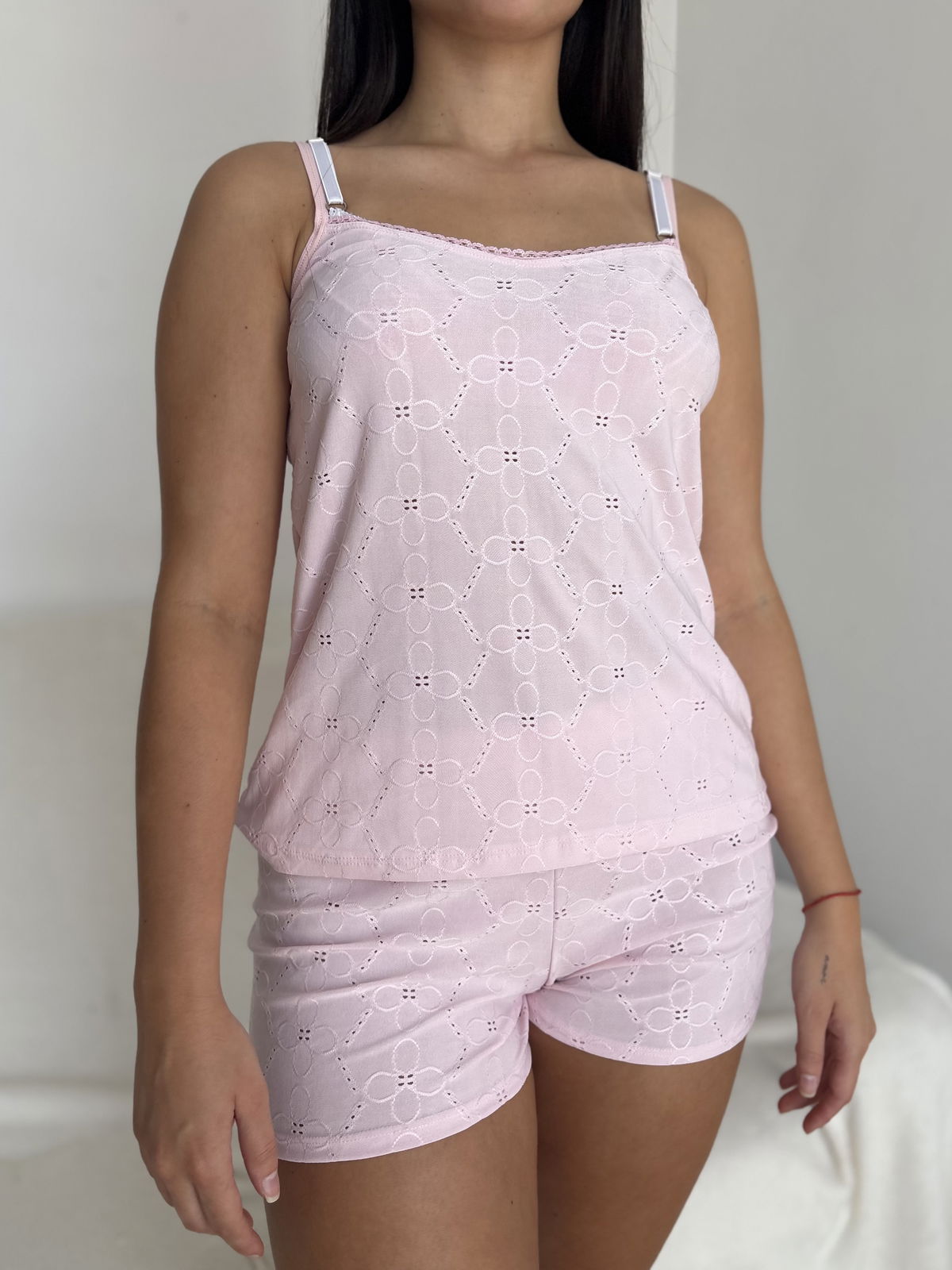 Pijama de broderie elastizado con breteles regulables. Avios metálicos bañados en plástico!