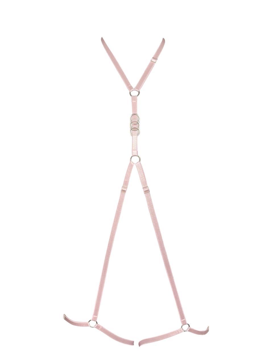 Arnés de cuerpo completo, 100% regulable. Confeccionado con elásticos de 1cm rasados y avíos metálicos hipoalergénicos.