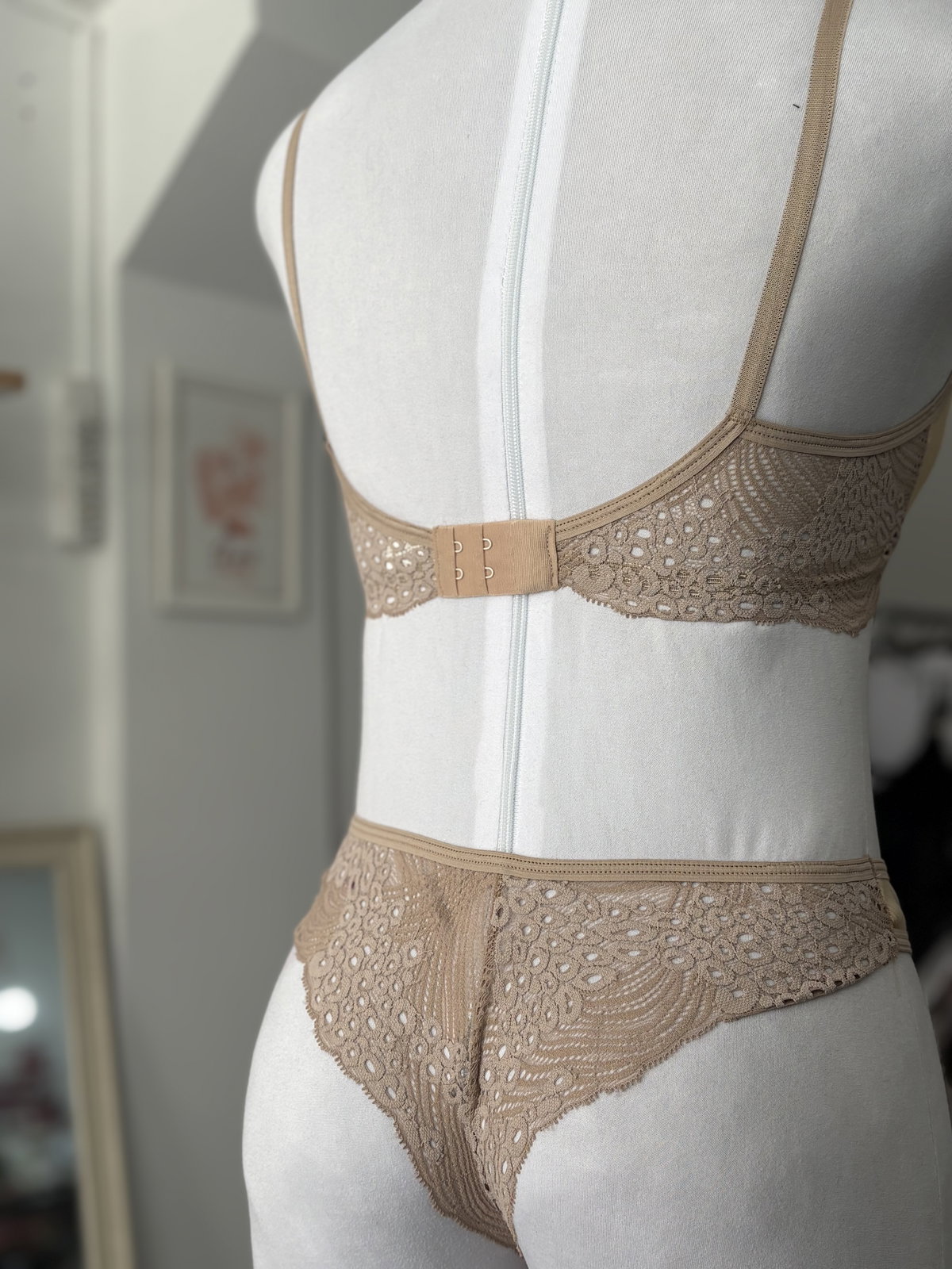 Pia es la combinación perfecta entre comodidad y buen calce. Este conjunto reúne lo mejor de dos de nuestros favoritos: la suavidad de Amber, gracias a su confección en lycra combinada con puntilla, y la comodidad del India, ya que la less viene entera por talles para adaptarse mejor a cada cuerpo.